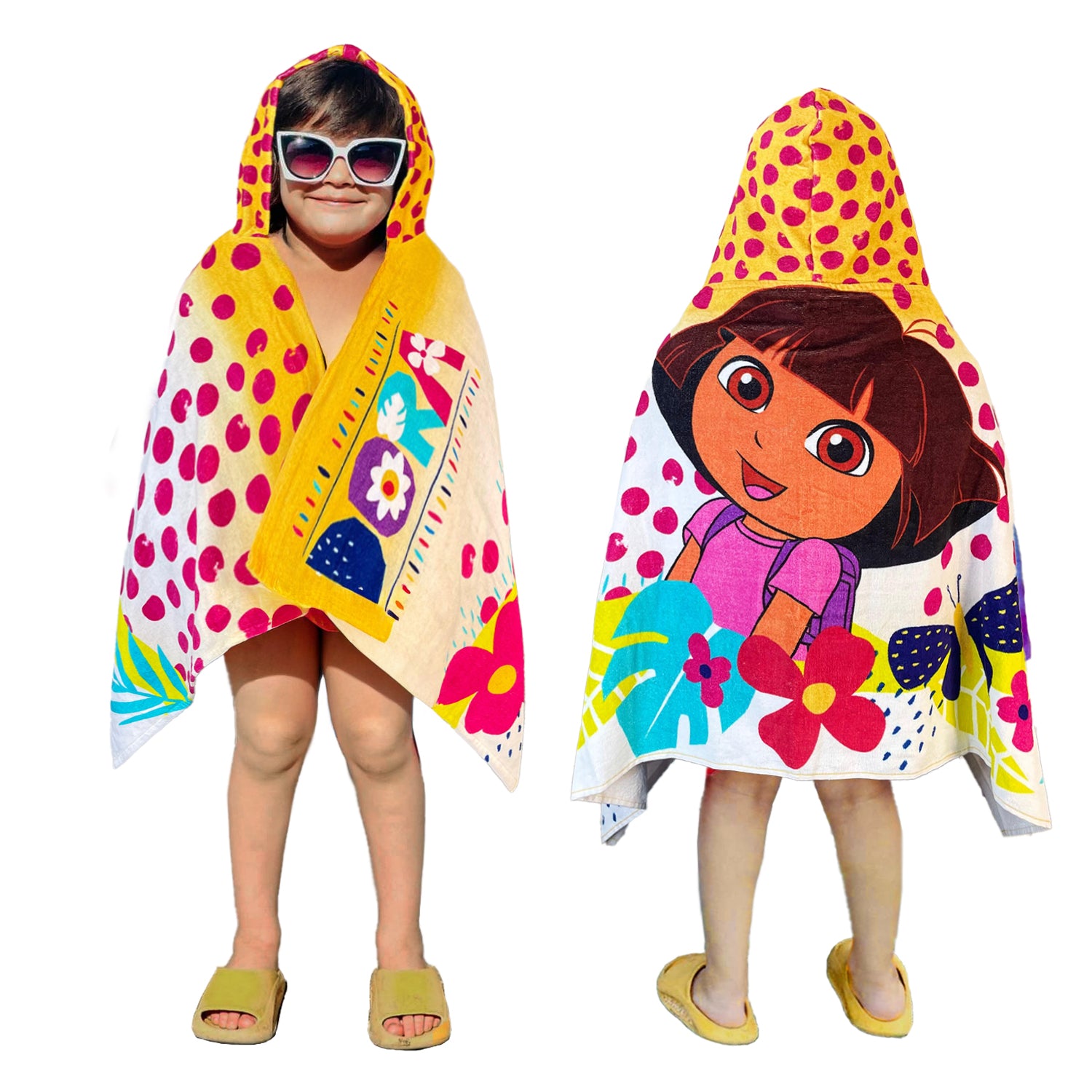 • FUNCTION: This Dora Pig Kids Hooded Towel is perfect for travel, swimming, beach, vacation or home. This will offer extra cosines to your child and easy drying after water activities.