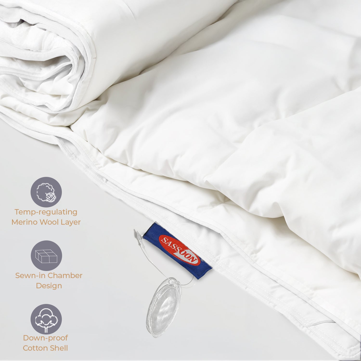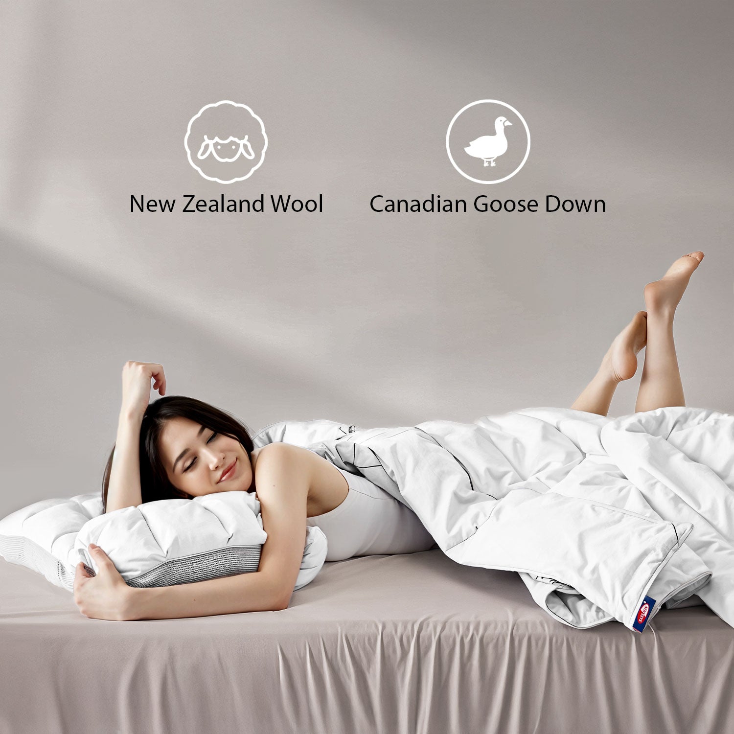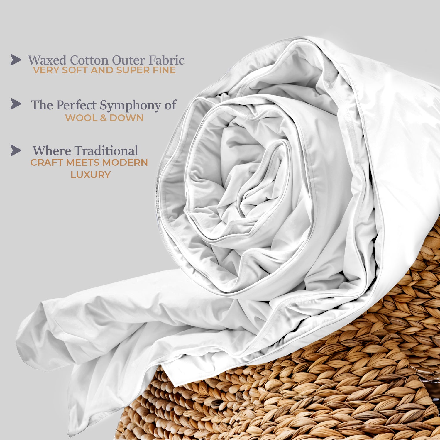 New Zealand wool is a premium natural fiber known for its exceptional temperature-regulating properties. It can absorb up to 30% of its weight in moisture without feeling wet, while still maintaining insulation. Wool also helps regulate body temperature throughout the night, keeping you cool in summer and warm in winter.