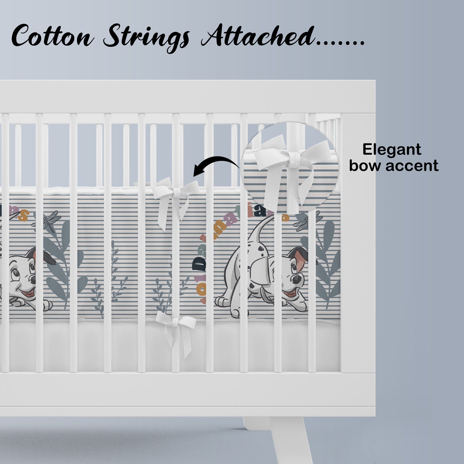 This charming infant crib bumper set offers the perfect blend of safety, comfort, and style for your little one's sleeping space. The 3-sides bumper expansion provides multi-angle cushioning inside the crib, ensuring your baby is protected from all directions. With folded and finished straps designed for sturdy knots, you can securely attach the bumper to any standard-sized crib with confidence.