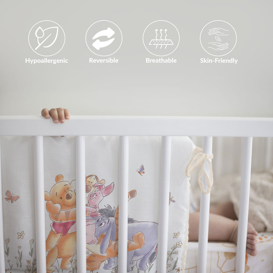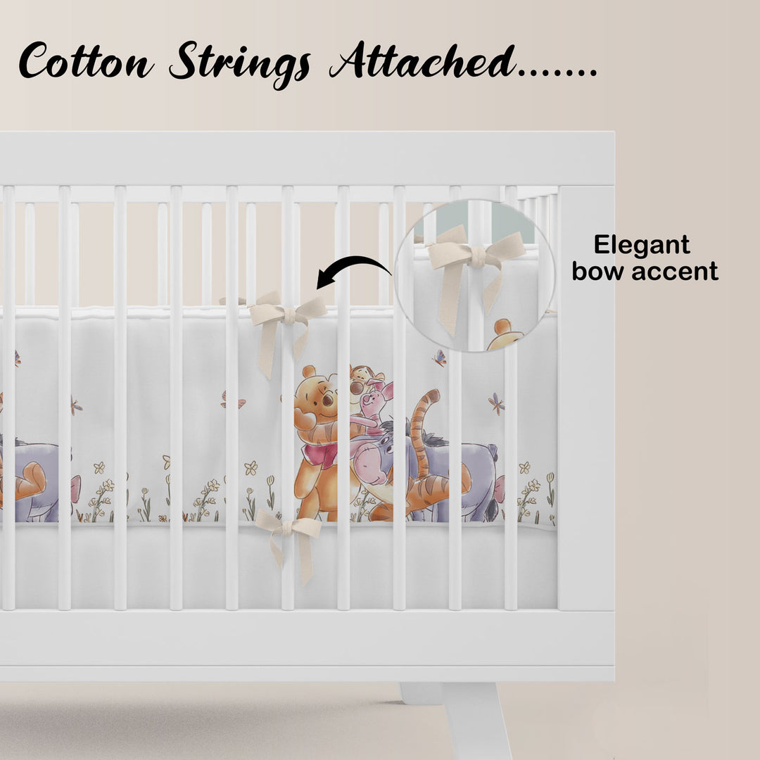 This charming infant crib bumper set offers the perfect blend of safety, comfort, and style for your little one's sleeping space. The 3-sides bumper expansion provides multi-angle cushioning inside the crib, ensuring your baby is protected from all directions. With folded and finished straps designed for sturdy knots, you can securely attach the bumper to any standard-sized crib with confidence.