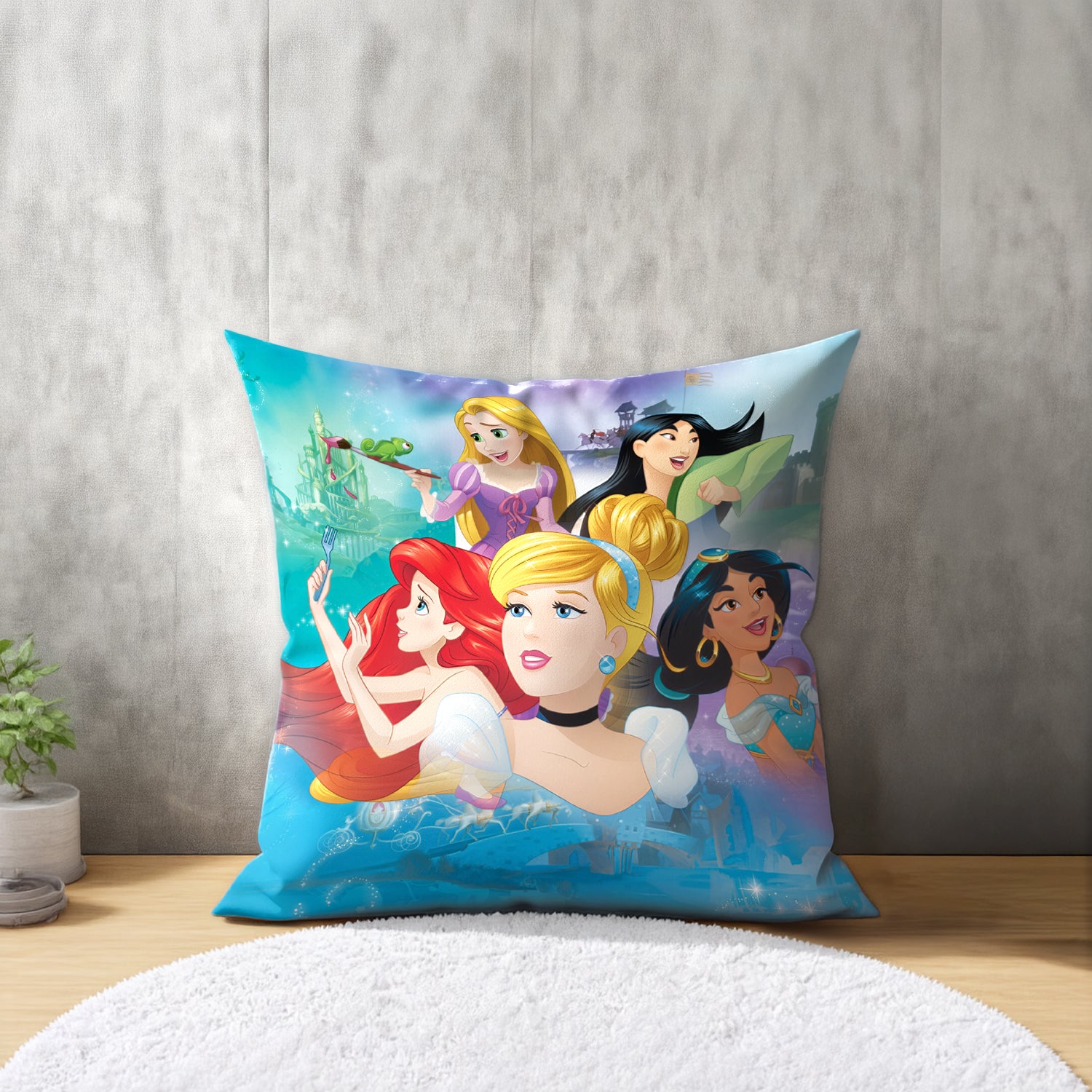Disney Princess Print Reversible Cushion By Sassoon Fab. It is Soft & fluffy, fade-resistant, High-density fill, Hypoallergenic, Reversible, etc. Size 40 cm x 40 cm